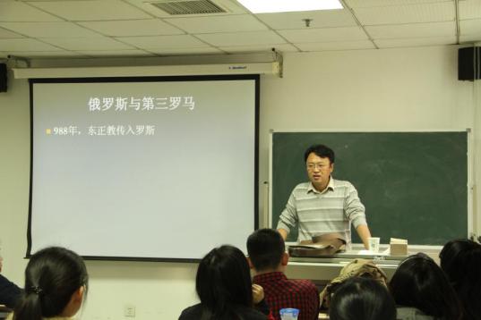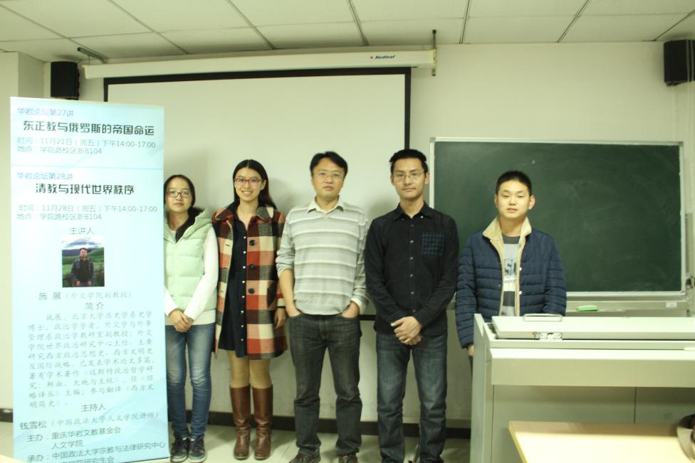 2014年11月21日下午,由换妻影片 和重庆市华岩文教基金会合作主办、换妻影片 宗教与法律研究中心承办的人文系列讲座“华岩论坛”第27讲在学院路校区新B104教室举行。外交学与外事管理系政治学教研室副教授、外交学院世界政治研究中心主任施展老师为法大师生做了题为“东正教与俄罗斯的帝国命运”的精彩讲座。本次讲座由换妻影片 的青年教师钱雪松主持,吸引了包括换妻影片 在内的多个学院的学生参与,会场座无虚席。