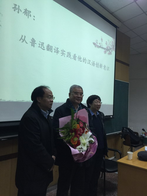 董燕老师首先宣布了中文论坛的正式启动,并介绍了孙郁老师的基本情况。虽然同学们对鲁迅已经有了或深或浅的诸多了解,但对其翻译实践的了解并不多,因此,孙老师的讲座从一开始便抓住了同学们求知的眼光。