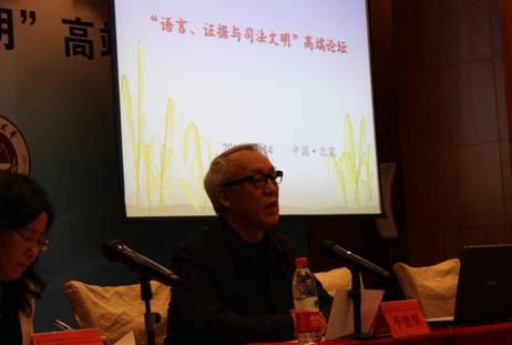 本次论坛分为主旨报告和专题报告两个部分。专题报告中又分为两个专题:一是言词证据与证据规则;二是法律语言与司法文明。