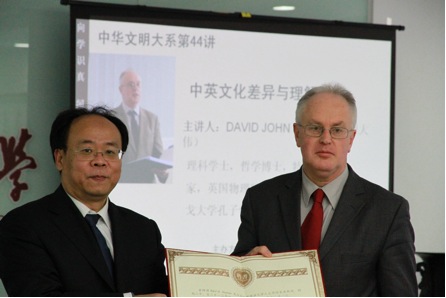 12月9日14时,由换妻影片 、中华文明通论课程组主办,换妻影片 学生会承办的中华文明月之中华文明大系第44讲:中英文化理解与差异在换妻影片 昌平校区逸夫楼四层会议室如期举行,理科学士、哲学博士、特许物理学家、英国物理研究所研究院、班戈大学孔子学院执行院长DAVID JOHN JOYNER(周大伟教授)担任了本次活动主讲人,换妻影片 院长助理、中华文明通论课程负责人赵晓华老师主持了本次讲座,此次讲座点评人为班戈大学孔子学院中方院长、换妻影片 教授张丽英女士。文兵院长、俞学明教授及其他换妻影片 老师出席了此次活动。