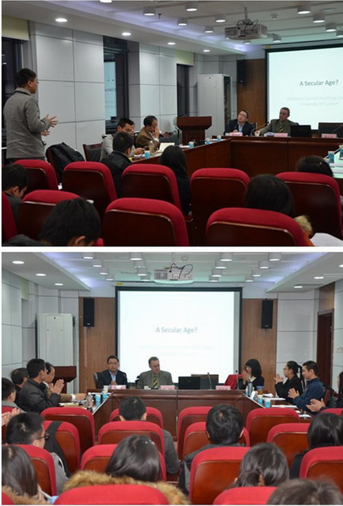 随后,宫睿副教授对Carroll教授的讲座进行了点评。他首先对《世俗时代》一书的结构、内容、宗教合理性与世俗社会的关系等进行了梳理与补充,之后就世俗社会的新的合理性标准及对话得以成为可能的基础等问题与Carroll教授进行了进一步探讨。