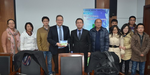 在问答环节,在场的同学就海德格尔前后期哲学的差异、哲学与神学的关系等问题进行了提问,Holger教授做了深入细致的回答。最后,讲座在轻松愉快的氛围中结束,张浩军副教授代表哲学系向Holger教授赠送了纪念品,在场的师生一起合影留念。