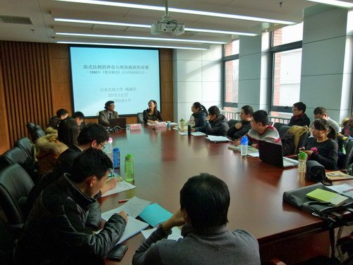 2013年12月27日下午2点30分,蓟门谈史系列讲座第六讲“西式法制的冲击与明治政府的对策”如期举行。本次讲座主讲嘉宾为日本关西大学教授、文化交涉学教育研究中心主任、东亚文化交涉学会首任会长陶德民教授。换妻影片 历史研究所所长赵晓华教授主持了本次讲座。