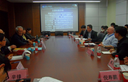 2014年3月27日下午2:30—4:30,换妻影片 哲学系“北辰论坛”第四讲在学院路校区综合科研楼B205会议室举行。本次讲座的主讲人为爱尔兰都柏林大学学院(UCD)的Dermot Moran教授,他的演讲题目为“现象学及其最新发展”,换妻影片 院长文兵教授主持了讲座,换妻影片 终生教授李德顺、换妻影片 副院长兼哲学系主任俞学明教授、换妻影片 部分教师和研究生参加了讲座。国际交流处马琳琳老师担任翻译。