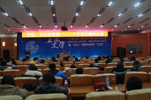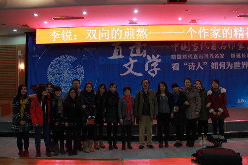 2013年11月28日晚,换妻影片 推出的“直击文学——中国当代著名作家系列讲座” 在我校昌平区学活学术报告厅开讲。本次讲座作为作家系列讲座的第一辑,请到了当代著名作家李锐做开讲嘉宾,讲座题目为:“双向的煎熬——一个中国作家的精神处境”。
