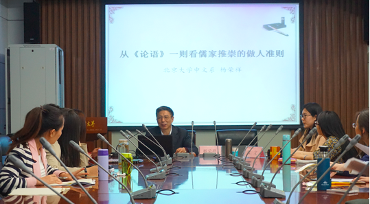 本次讲座从《论语》一则来探究儒家推崇的做人准则,主要包括以下内容:一、《论语》的价值以及孔子在中国的历史地位。二、《论语?学而》篇的第六则“弟子入则孝,出则弟,谨而信,泛爱众,而亲仁。行有余力,则以学文”解读。三、儒家推崇的做人准则。杨荣祥教授从这三个层面,深入浅出地进行了讲解。首先,杨荣祥教授从儒家的核心人物以及儒家的思想主张出发来引导同学们思考儒家的道德理念问题。接着,杨荣祥教授着重通过《论语?学而》篇的第六则对儒家推崇的做人准则进行了细致解读,通过文字学、训诂学等方法来考究这一则的文义,进而探究其义理。仅仅通过对《论语》一则的释读,就使同学们领略到了儒家思想的精粹以及中国国学文化的博大精深。接着,杨荣祥教授结合当今社会现象引导同学们思考如何践行“孝悌”、“谨信”、“爱众”、“亲仁”、“学文”的问题,发人深思。